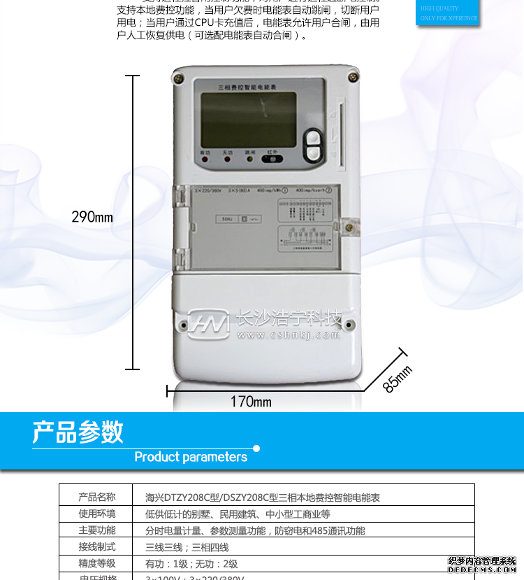 海興DTZY208C三相四線電能表主要功能