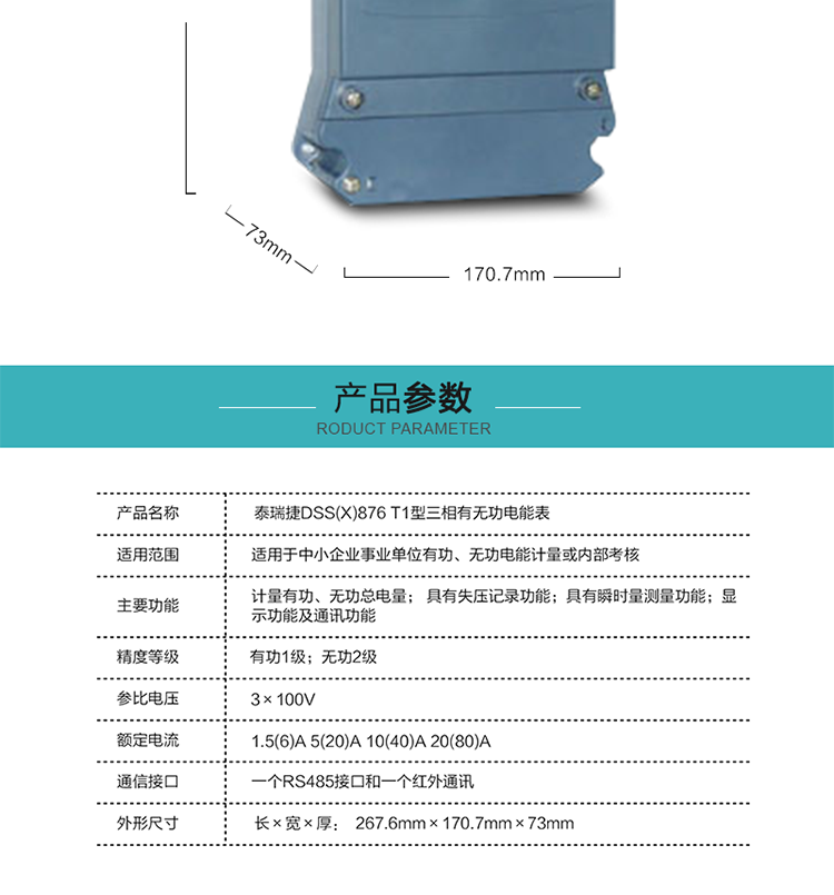 深圳航天泰瑞捷DSS(X)876 T1電能表技術特點及功能說明